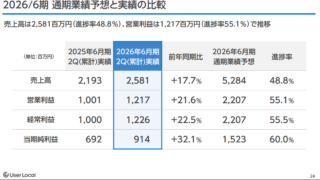ユーザーローカル ユーザーローカル:2026年6月期第2四半期決算