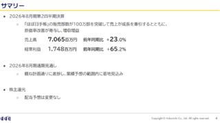 ほぼ日 ほぼ日:2026年8月期第2四半期決算