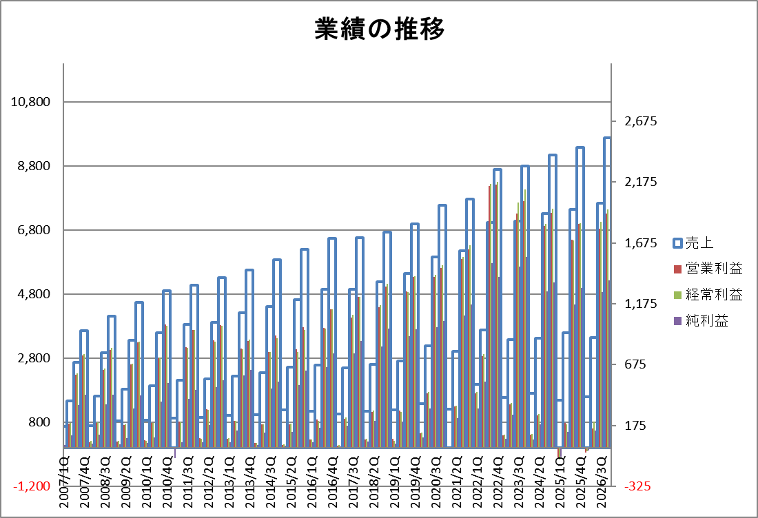 3Q単独の期間としては過去最高の売上4,175営業利益1,636。